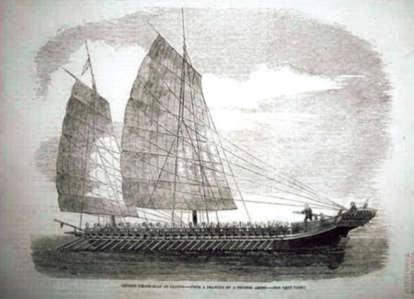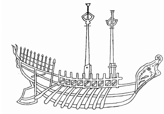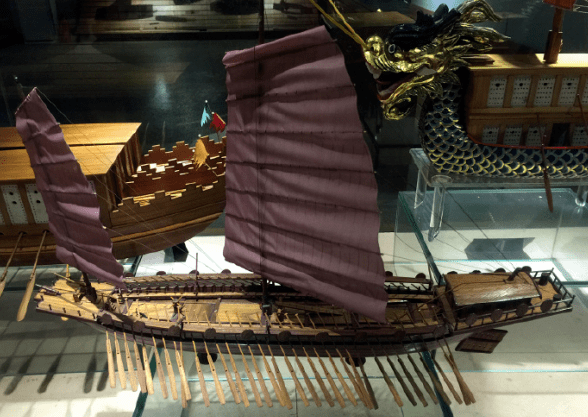 中国人用桨的时间并不算晚,但是智慧的中国人发明出了更具有效率的橹。俗话说,好事不能让你一个人全占了呀,推进效率高的橹,要付出了操作空间大的代价。加之作战环境、战略战术思想以及中国的桨手资源相对较弱(从这点上说,古代西方可比中国有低人权优势)的因素,中国水师对于战船速度的追求也就没有那么强烈。因此虽然中国战船中有桨船,也有桨帆船,但是似乎并未成为主流,橹帆船相对比较多见。